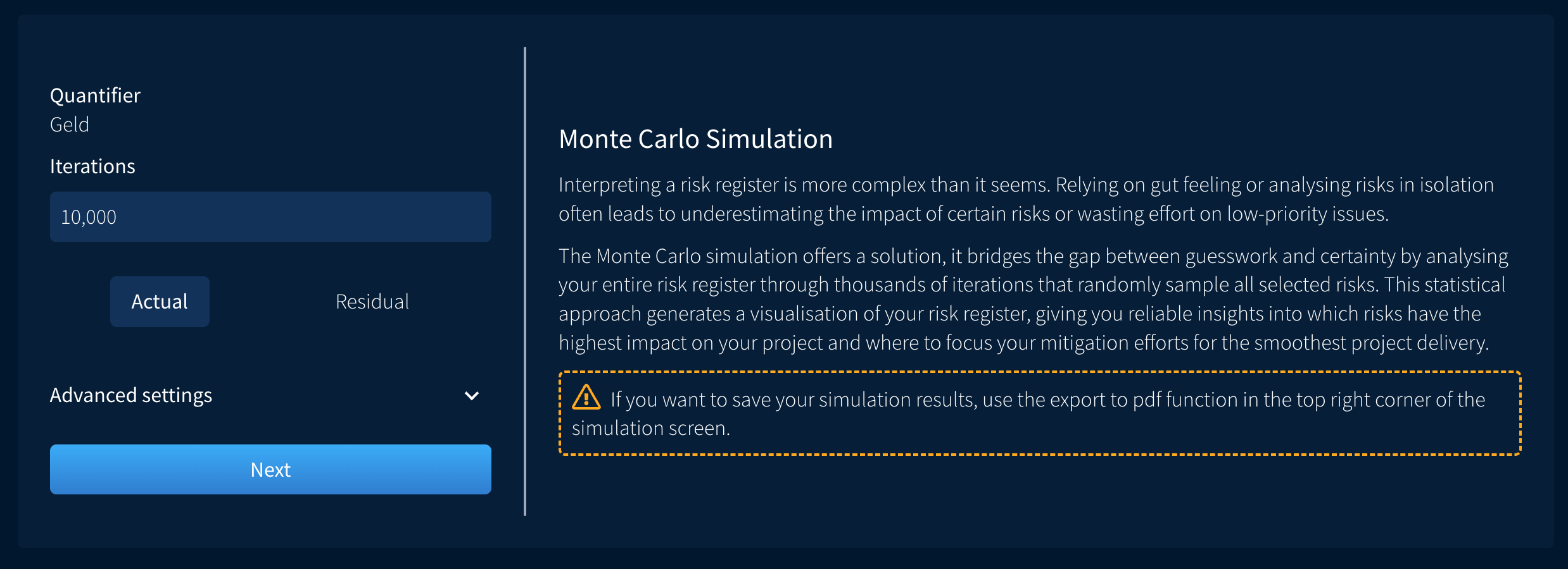Monte Carlo simulations allow users to move beyond static risk scores and explore how uncertainty truly behaves within a project. By running a simulation, you gain deeper insights that support more informed and confident decision-making.